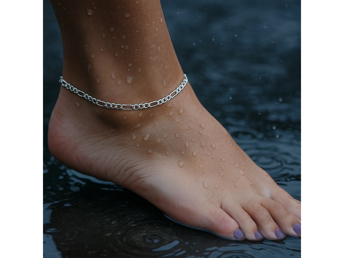 Figaro Anklet in 14k White Gold (2.6 mm)