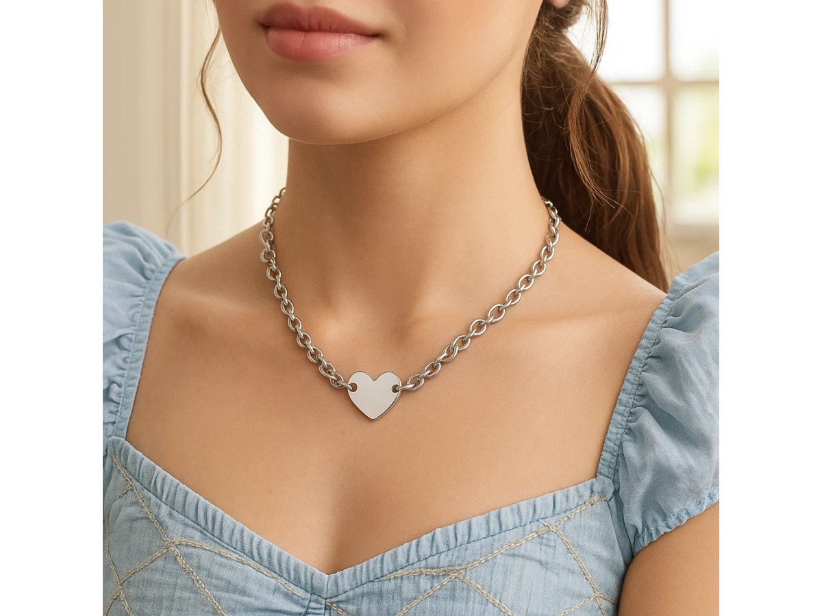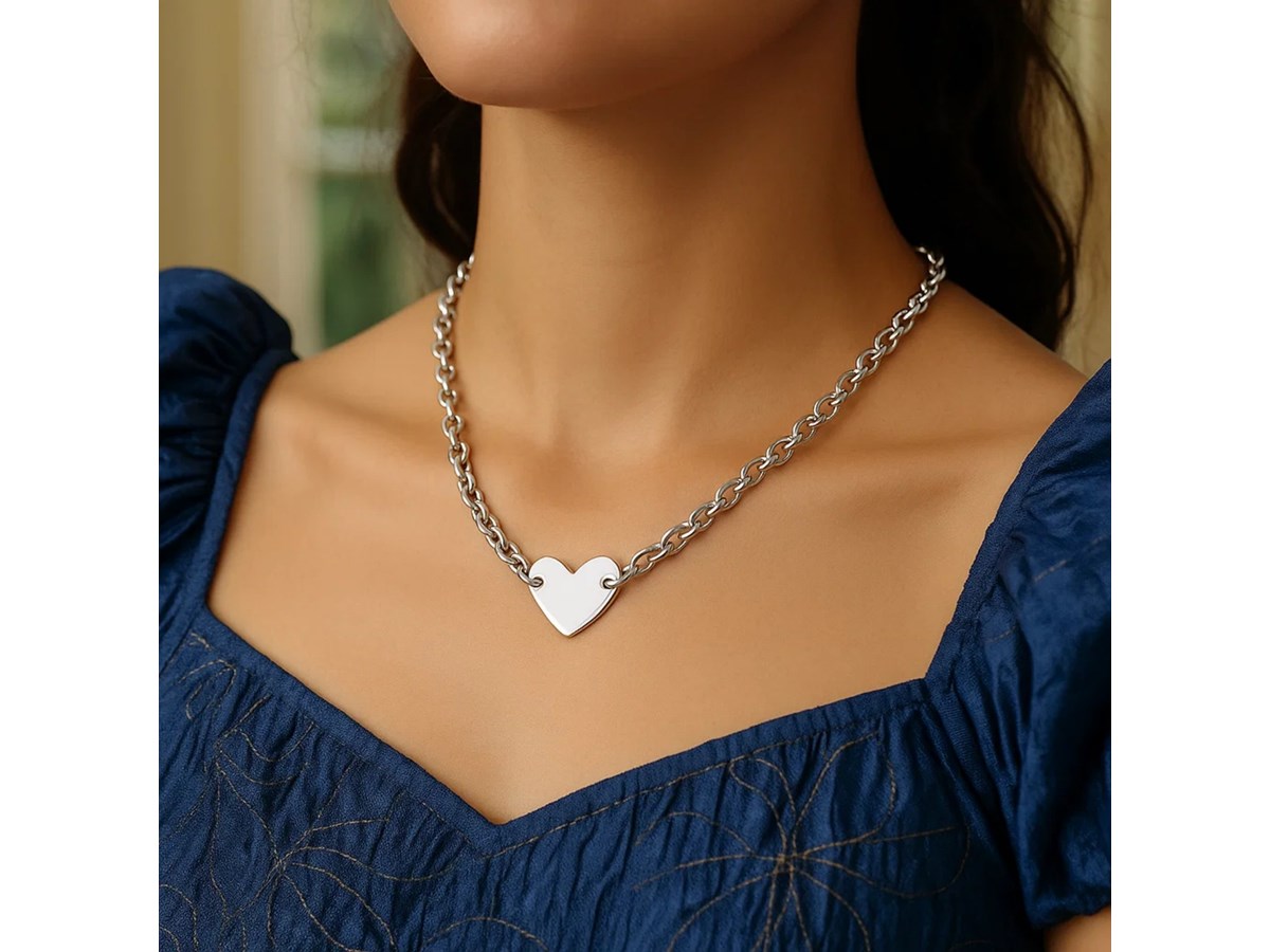 Adorned with a flat heart shape station, this chain necklace is designed in rhodium plated sterling silver. Available in 18 inches.