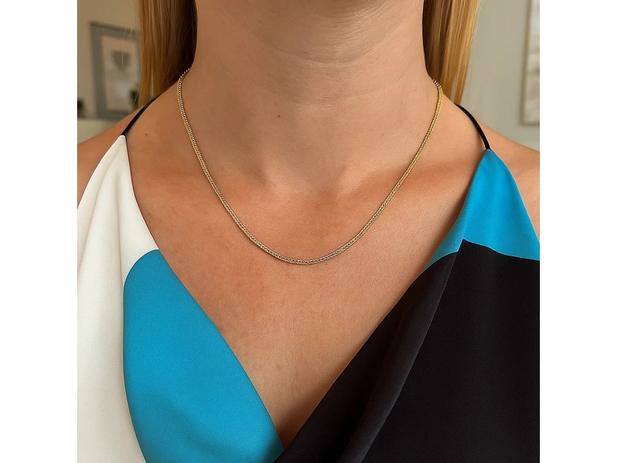 Franco chain crafted in 14k yellow gold measuring 0.90 millimeters in width. Available in lengths 16 inches, 18 inches and 20 inches.