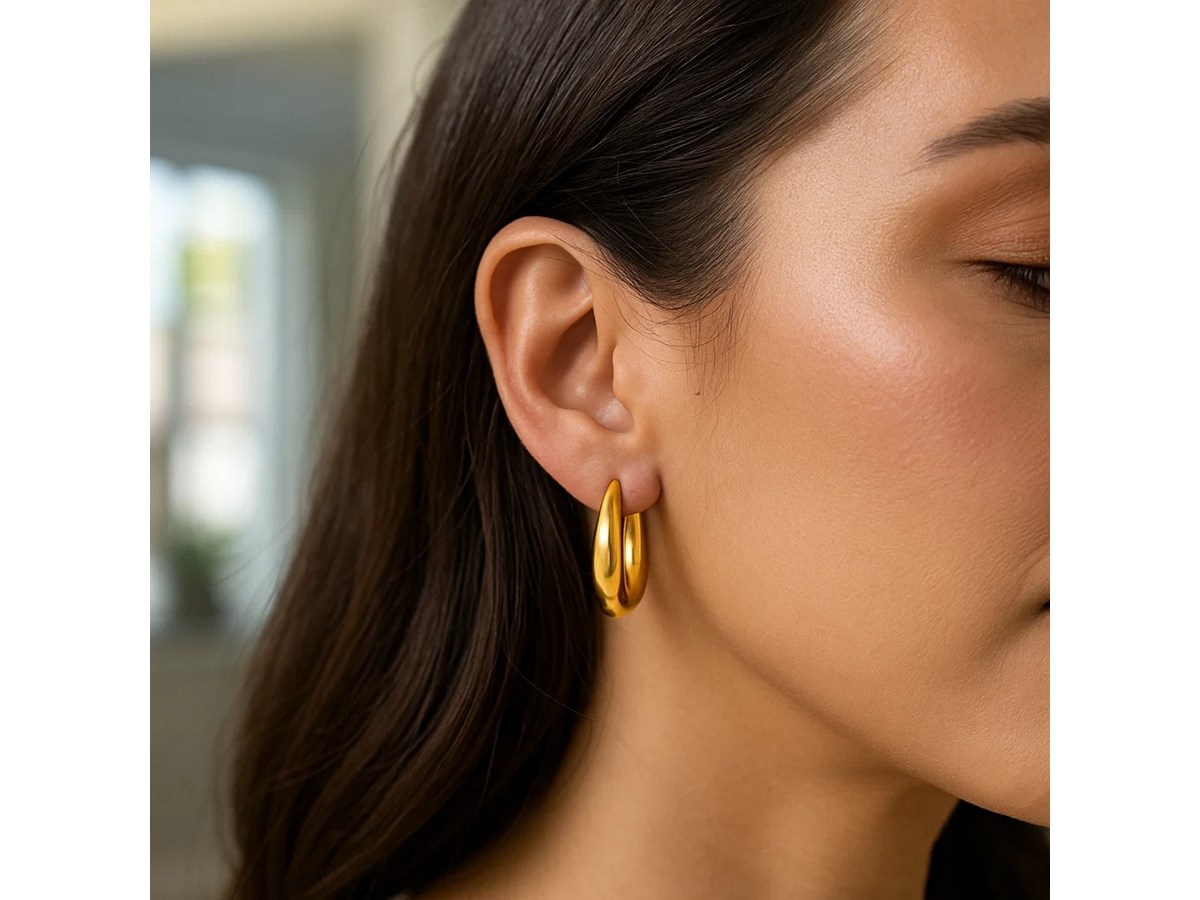 A darling pair of puffed hoop earrings with a graduated look. Designed in 14k yellow gold and secured with snap backs.