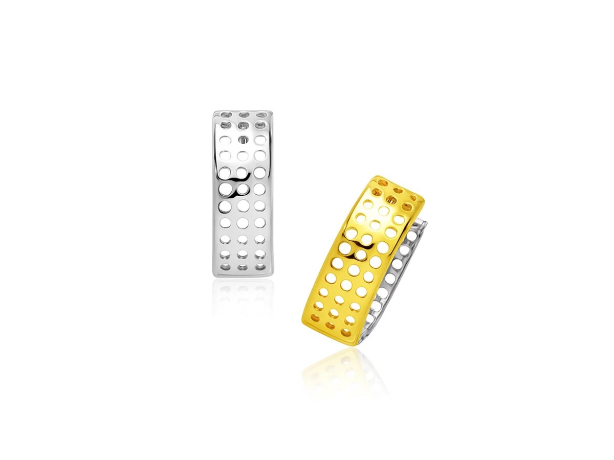 Hinged Mesh Snuggable Earrings in 14k Two-Tone Gold