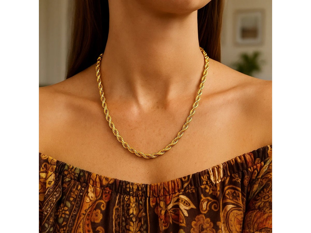 Hollow Diamond Cut Rope Chain in 14K Yellow Gold (5.00 mm)