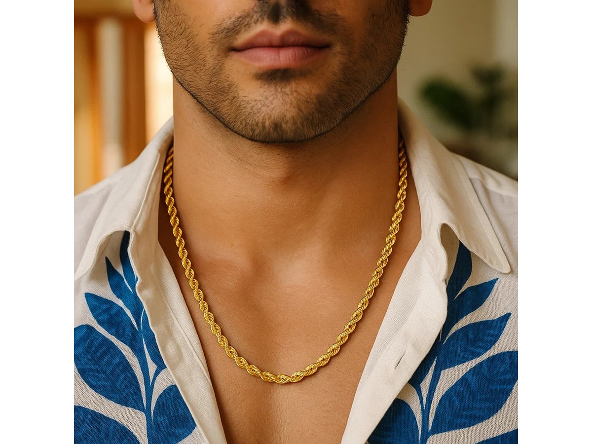 Hollow diamond cut rope chain crafted in 14K yellow gold measuring 5.00 mm in width. Available in lengths 20 inches, 22 inches and 24 inches.