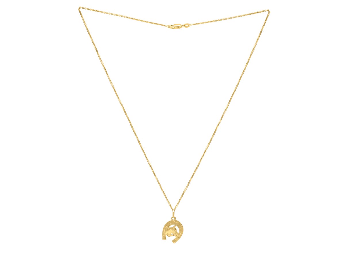 Horse and Horseshoe Necklace in 14K Yellow Gold