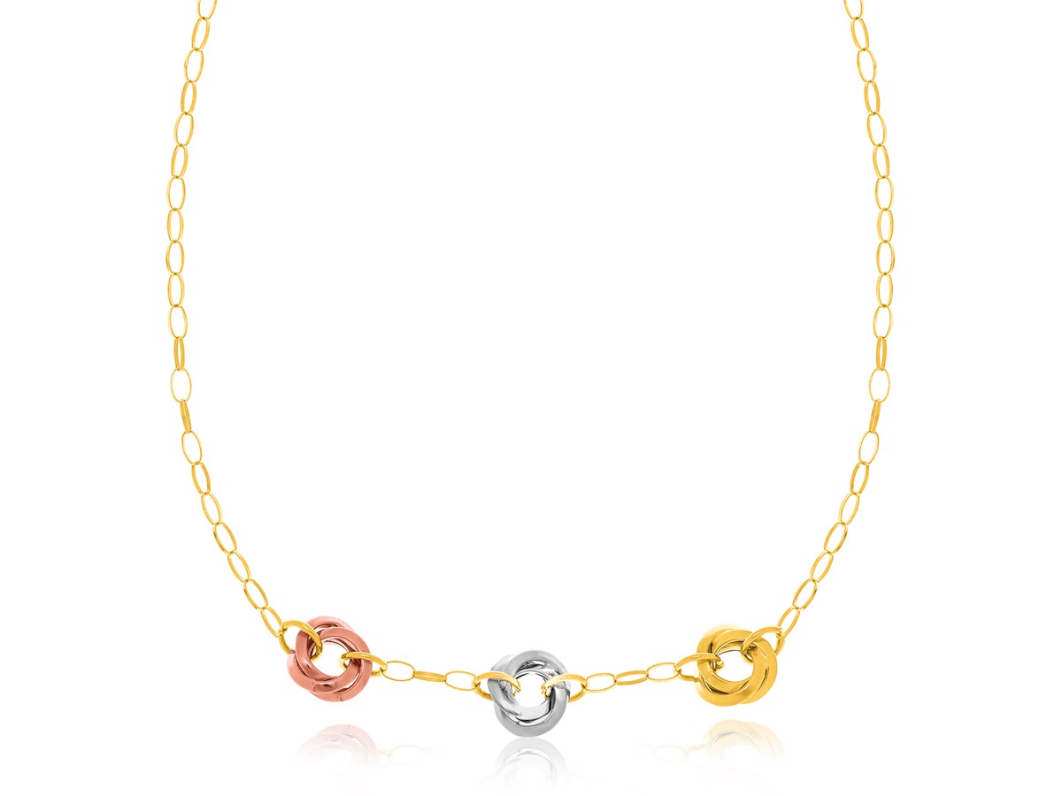 Interlinked Ring Station Necklace in 14K Tri-Color Gold