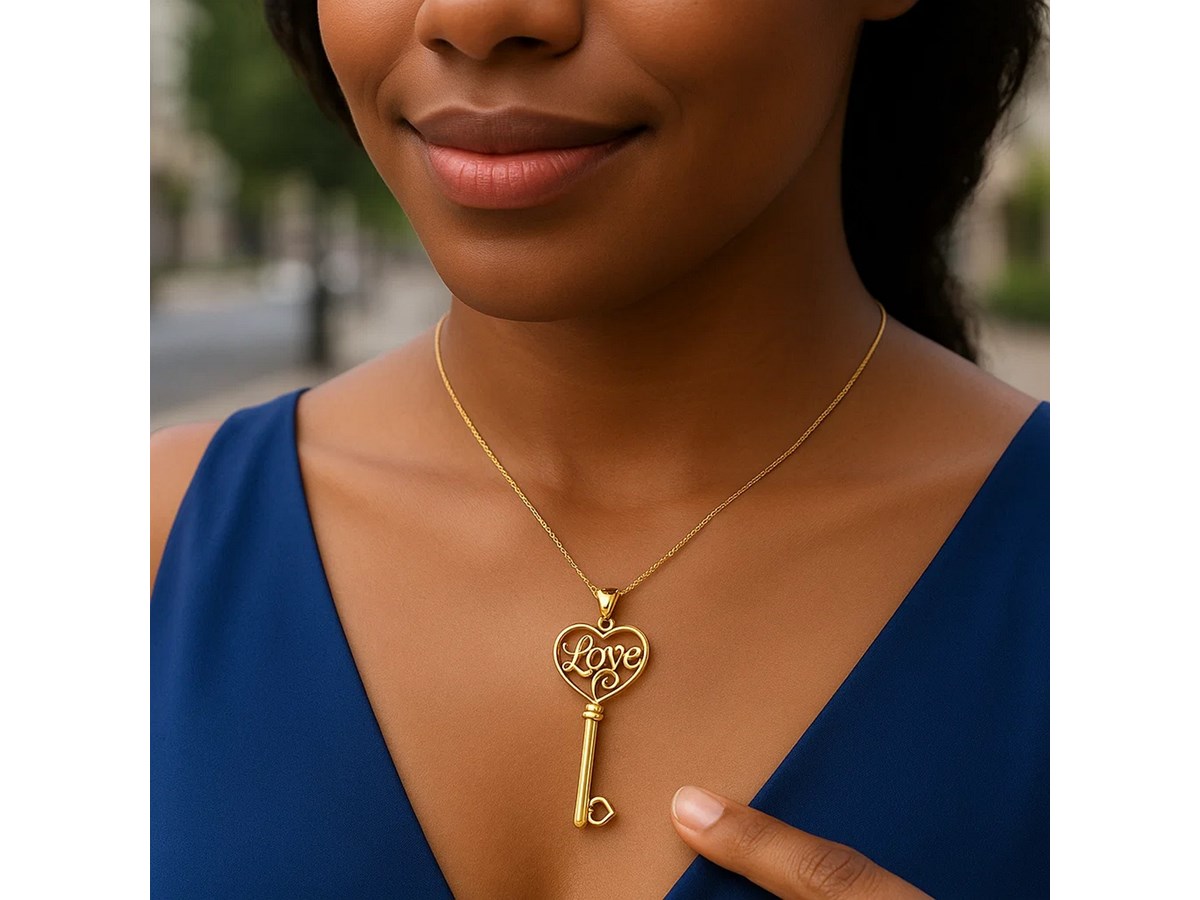 LOVE Skeleton Key Pendant in 14k Yellow Gold