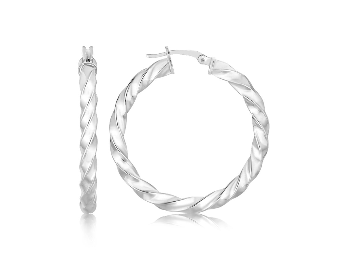 Large Fancy Polished Twist Hoop Earrings in Sterling Silver