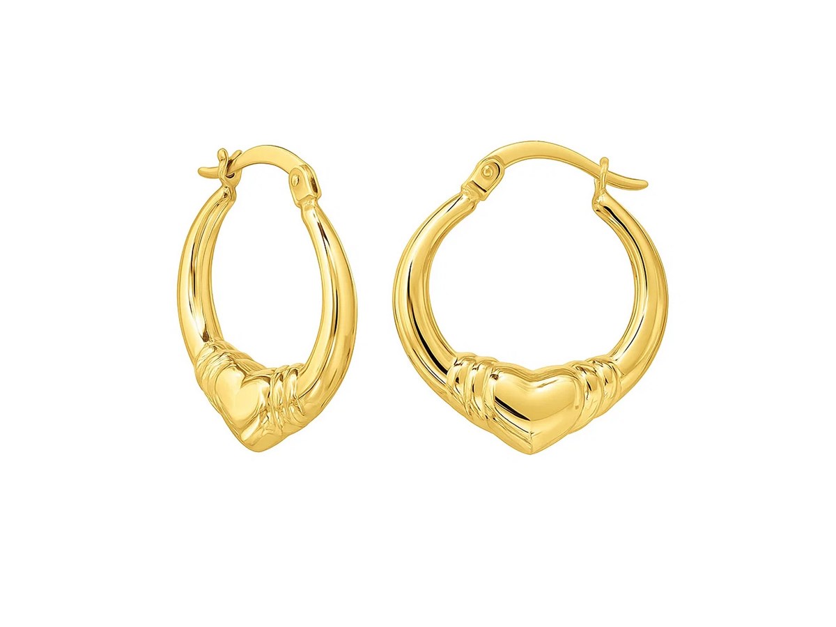 Large Heart Hoop Earrings in 14K Yellow Gold