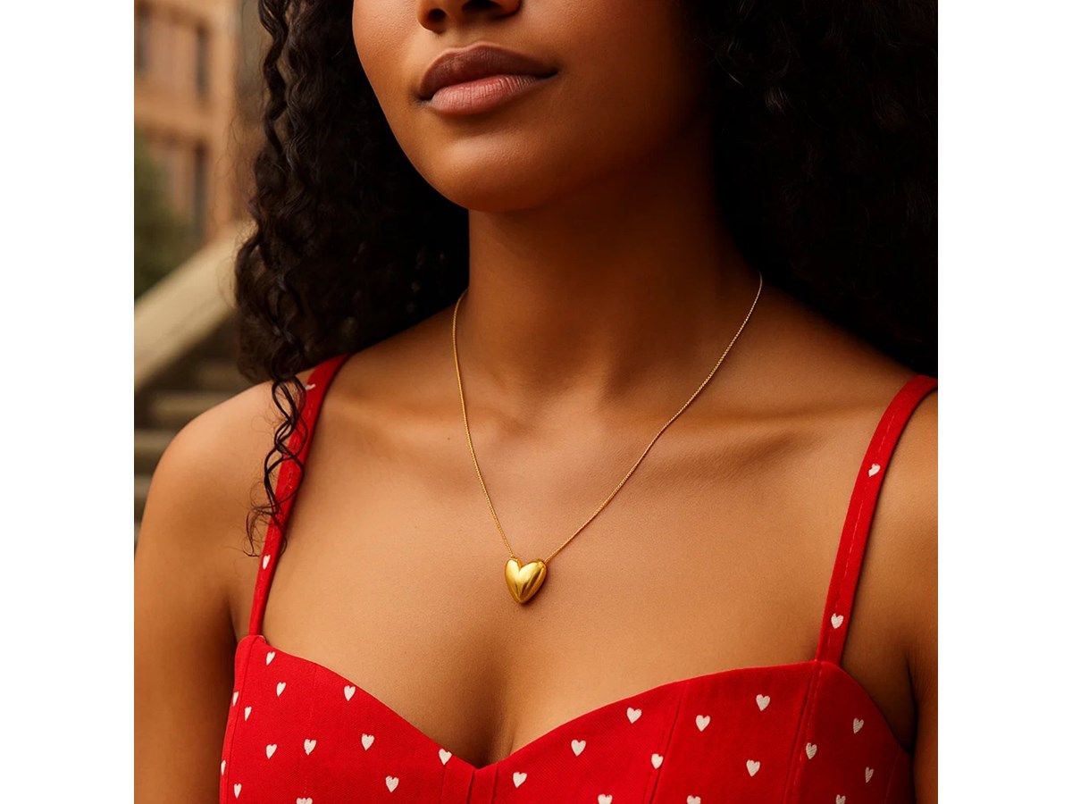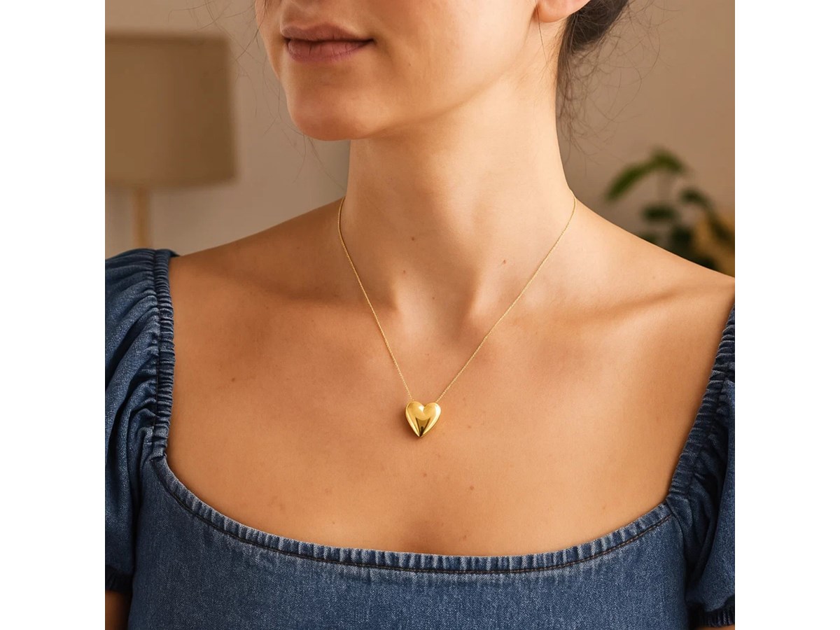Large Puffed Heart Necklace in 14K Yellow Gold