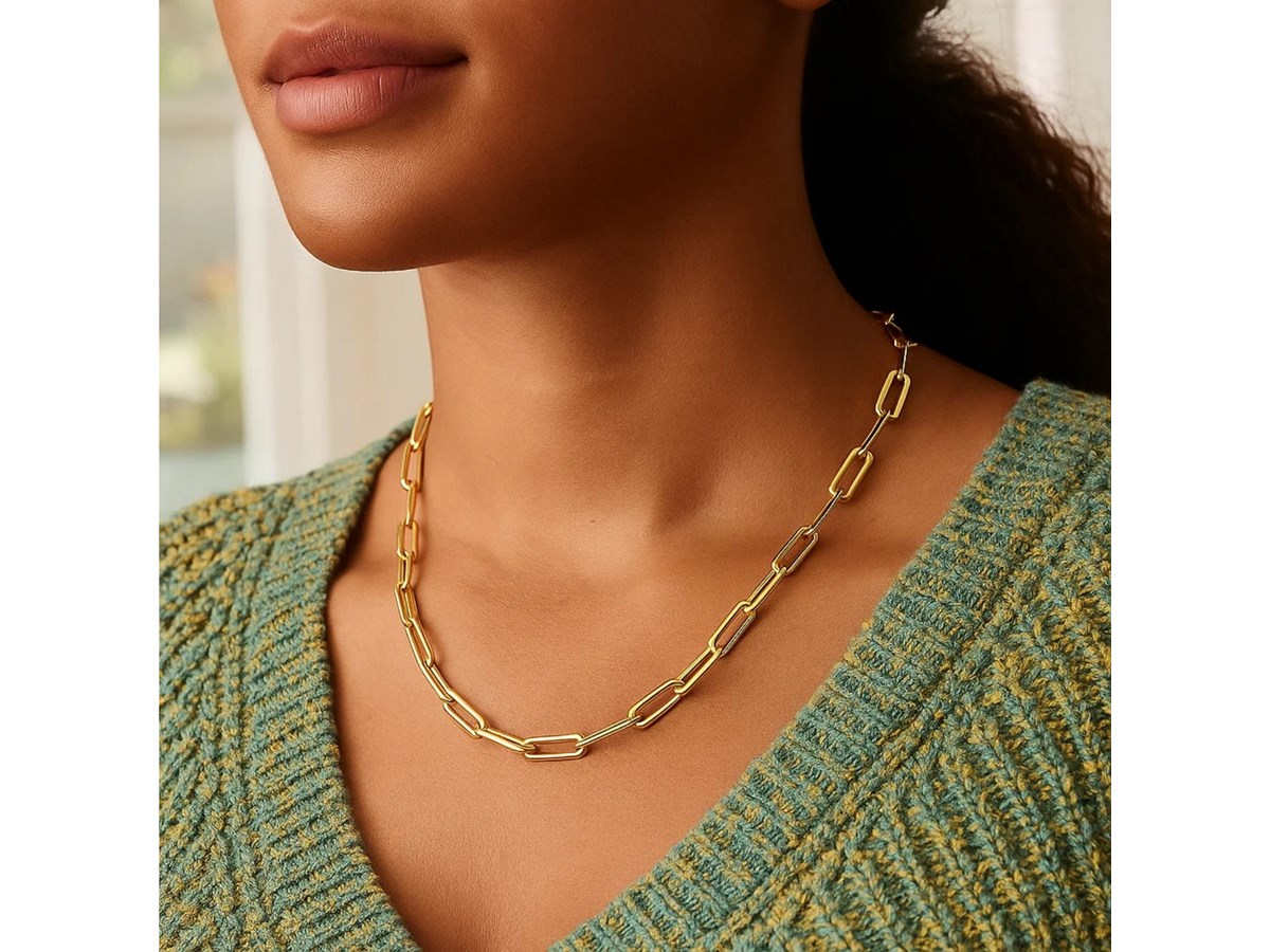 Designed for both depth and dimension, this 14k yellow gold domed paperclip necklace features sleek, elongated links with a convex shape that enhances light reflection and creates a sculpted effect. The domed design adds a refined touch, giving the classic paperclip style a more substantial, elevated look. Finished with a pear-shaped lobster clasp for secure wear, this necklace makes a subtle yet striking statement—perfect for layering or wearing solo with effortless sophistication.