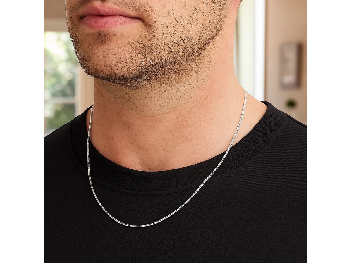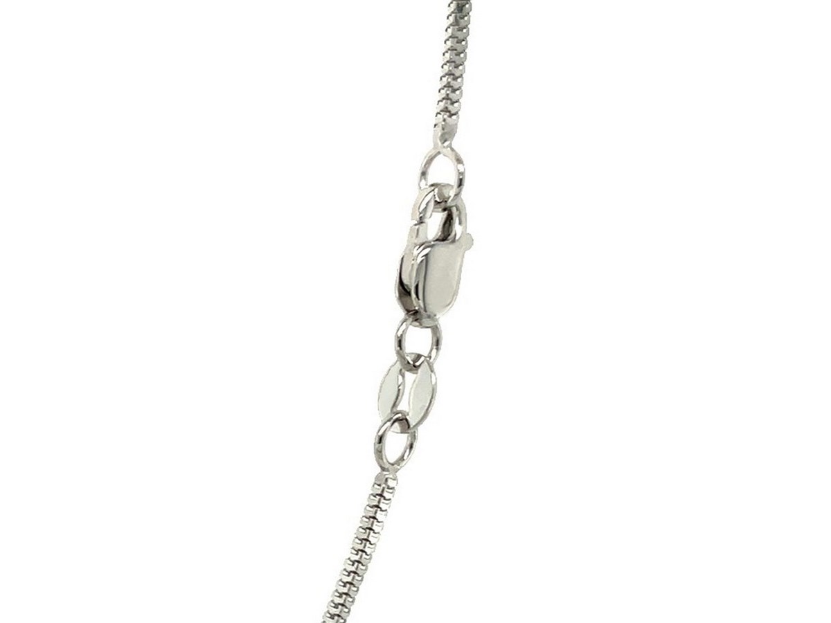 Milano chain crafted in 14k white gold measuring 1.10 millimeters in width. Available in lengths 16 inches, 18 inches and 20 inches.