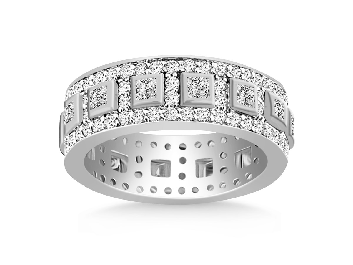 Modern Princess and Round Cut Diamond Eternity Ring in 14K White Gold