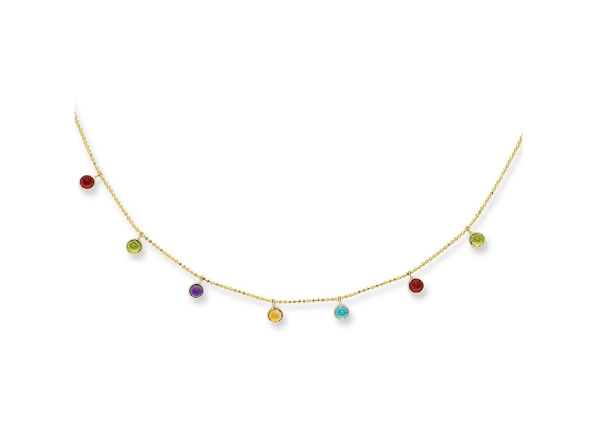 Multi-Colored Stone Charm Chain Necklace in 14k Yellow Gold