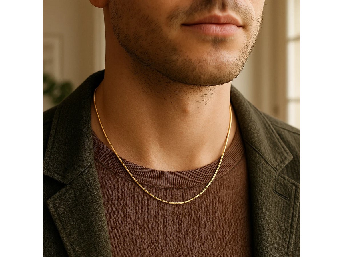 Octagonal shiny snake chain crafted in 14k yellow gold measuring 0.85 millimeters in width. Available in length 16 inches, 18 inches, 20 inches and 24 inches.