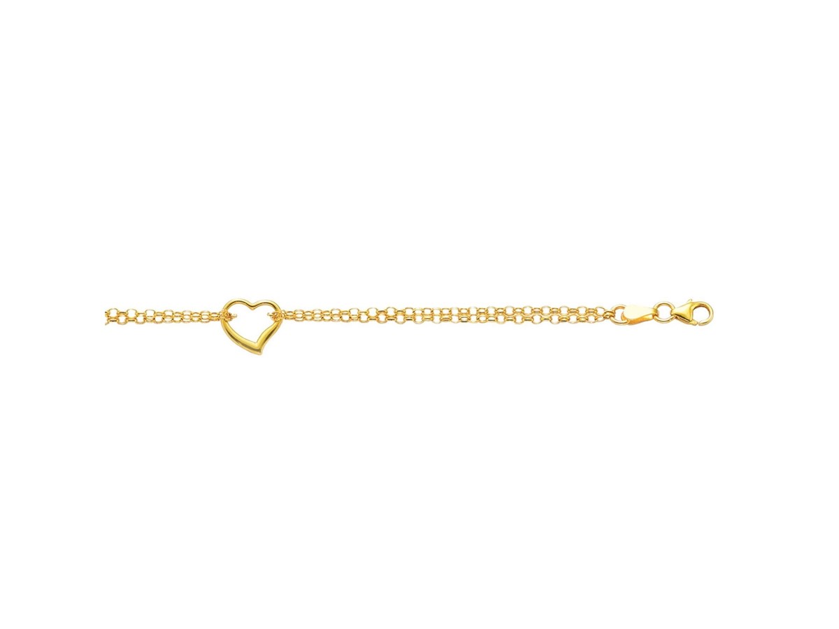 A wonderfully crafted 10k yellow gold adjustable anklet featuring a double rolo chain and an open heart station. Comes with a lobster lock and measures 10 Inches.