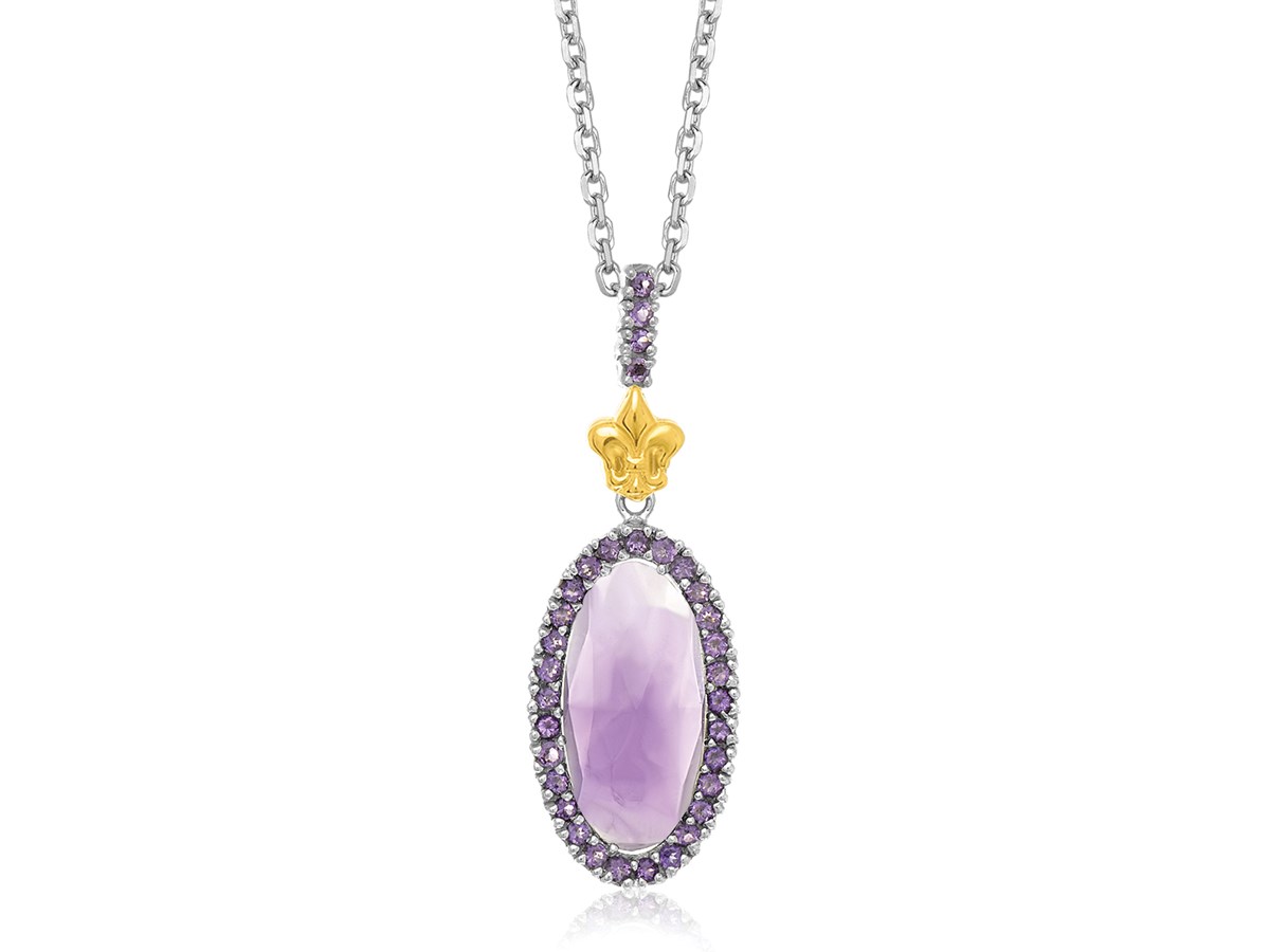 Oval Amethyst Fleur De Lis Pendant in 18k Yellow Gold and Sterling Silver