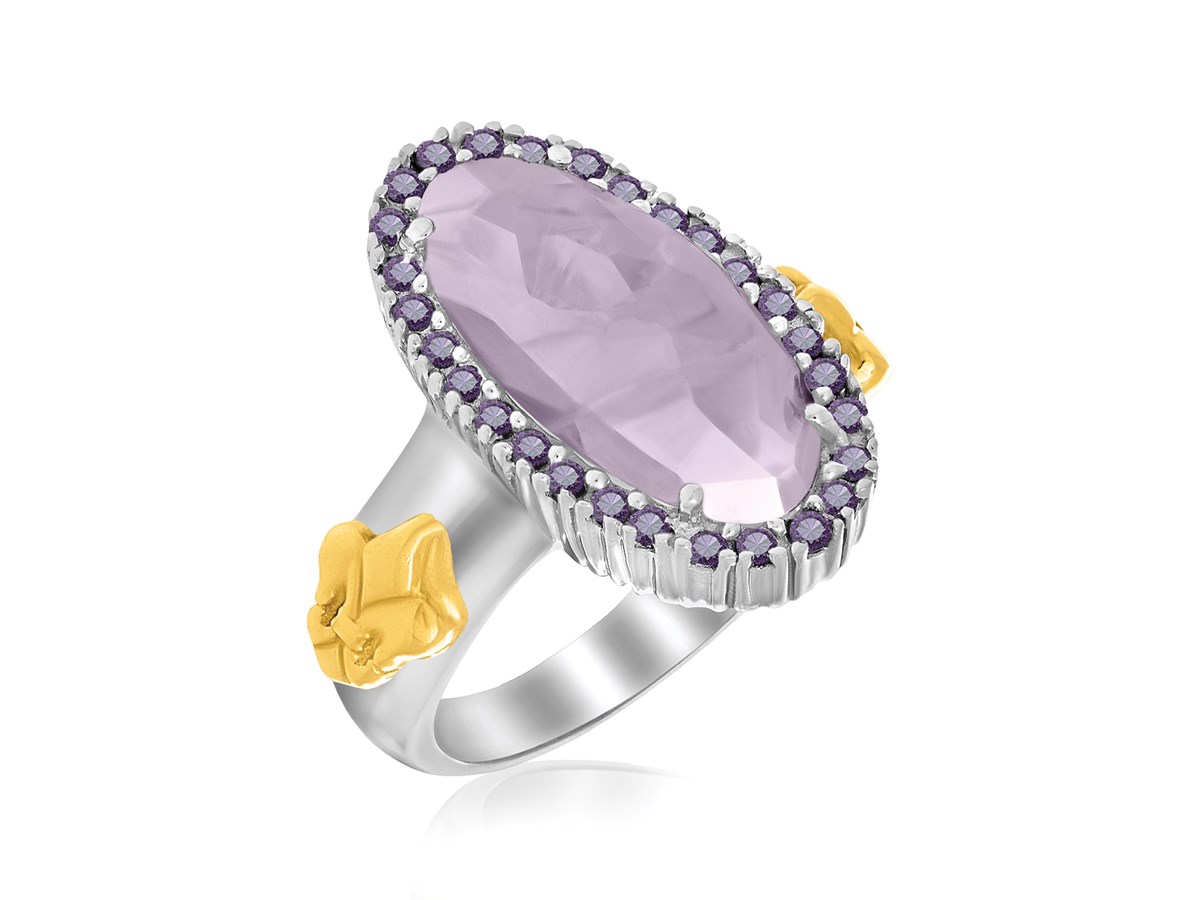 Oval Amethyst Fleur De Lis Ring in 18k Yellow Gold and Sterling Silver