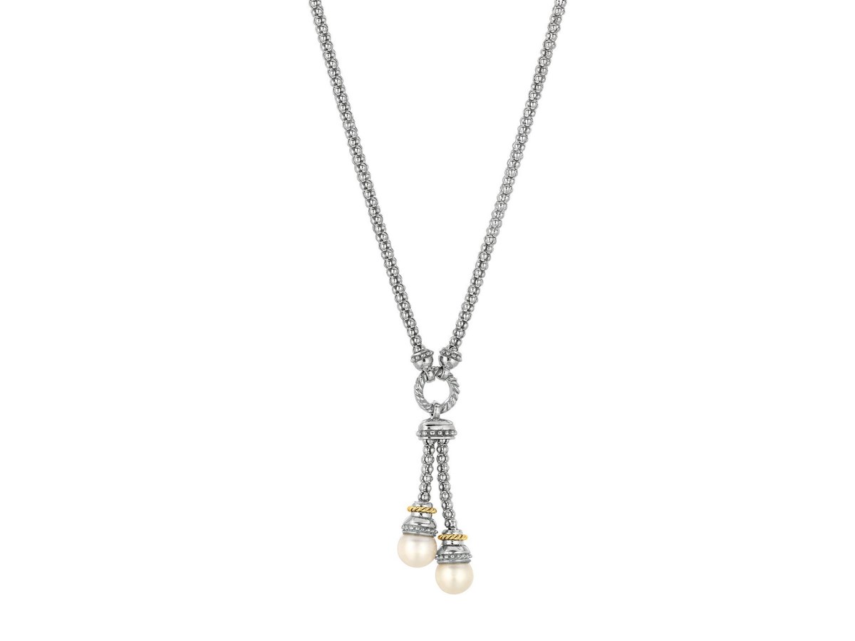 Pearl Lariat Motif Popcorn Necklace in 18k Yellow Gold and Sterling Silver
