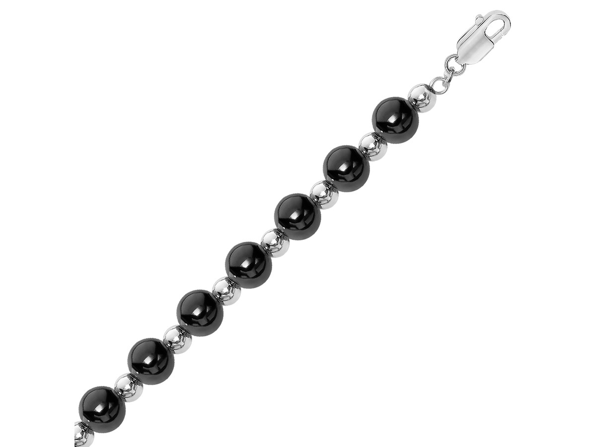 Polished Bead Design Bracelet in Rhodium and Ruthenium Plated Sterling Silver