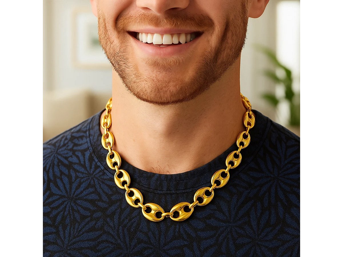Ready to make a statement? This 18 inches 14k gold lite puffed mariner link chain necklace features impressive 16mm oval links inspired by traditional nautical anchor chains. The lightweight design fuses classic maritime aesthetics with contemporary elegance, ensuring this necklace stands out as a centerpiece of your style.