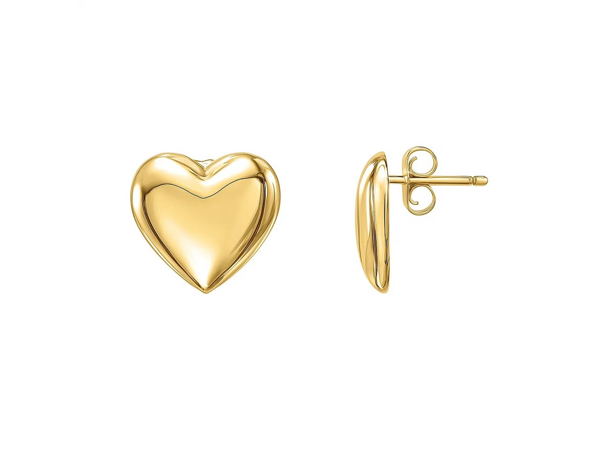 Add romance to your look with these 14k yellow gold puffed heart stud earrings. Designed to capture the warmth and charm of love, these earrings feature a softly rounded, puffed heart shape in a radiant gold finish. The polished surface enhances their glow, creating delicate yet eye-catching earrings.