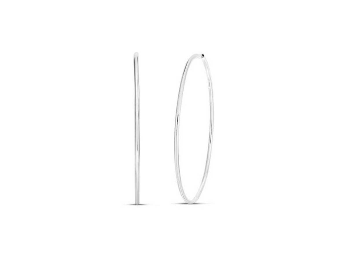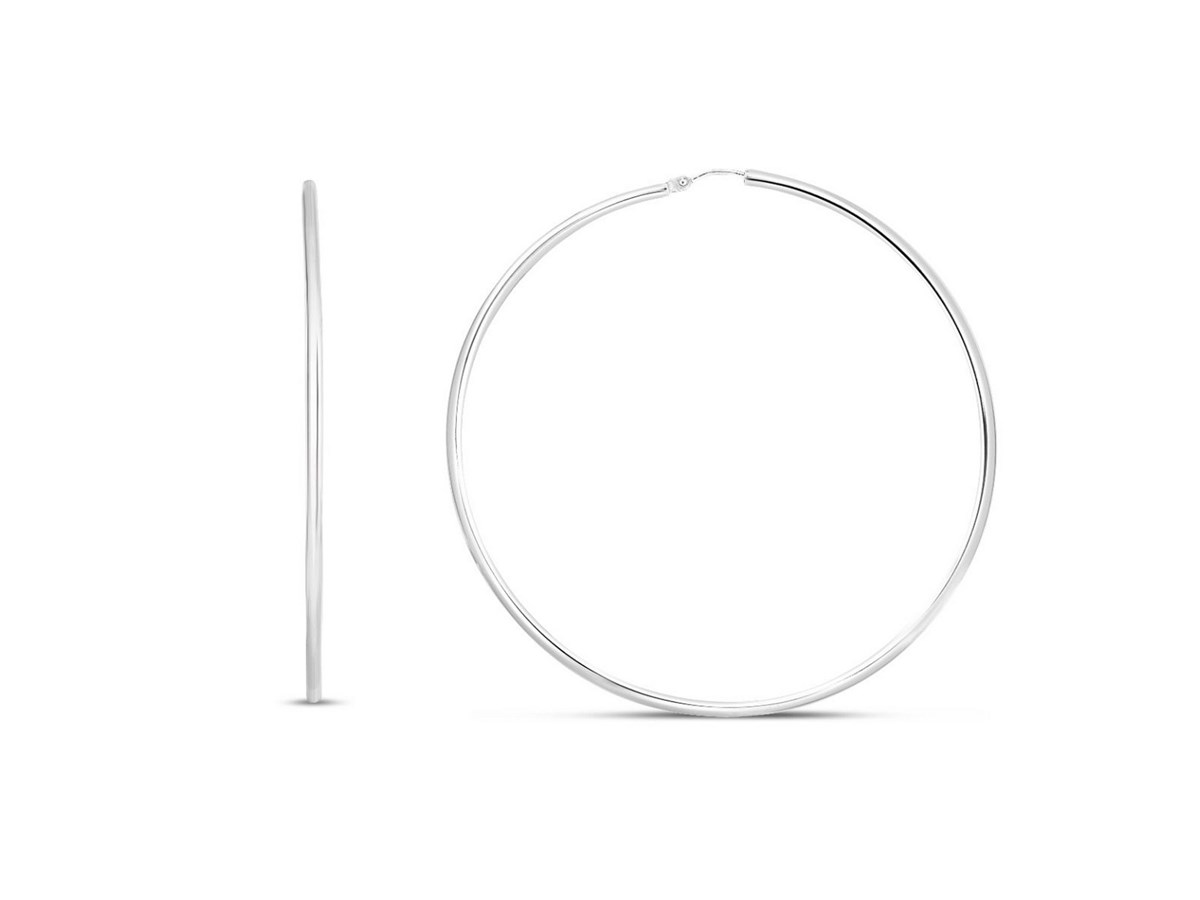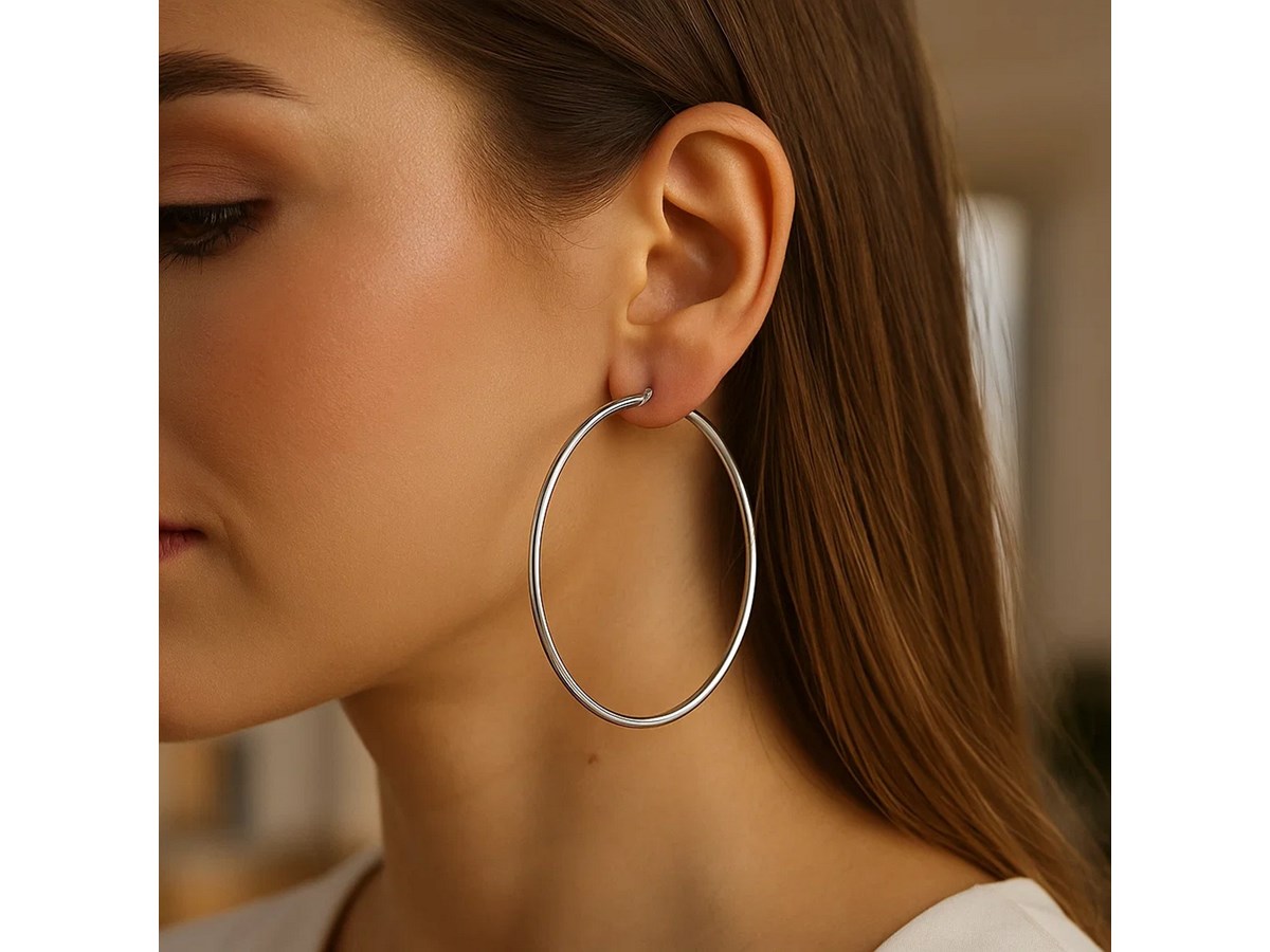 Elegant rhodium-plated endless hoop earrings in sterling silver. Featuring a seamless circular design with a polished finish, these lightweight hoops offer timeless shine and sophistication, perfect for everyday wear or special occasions.
