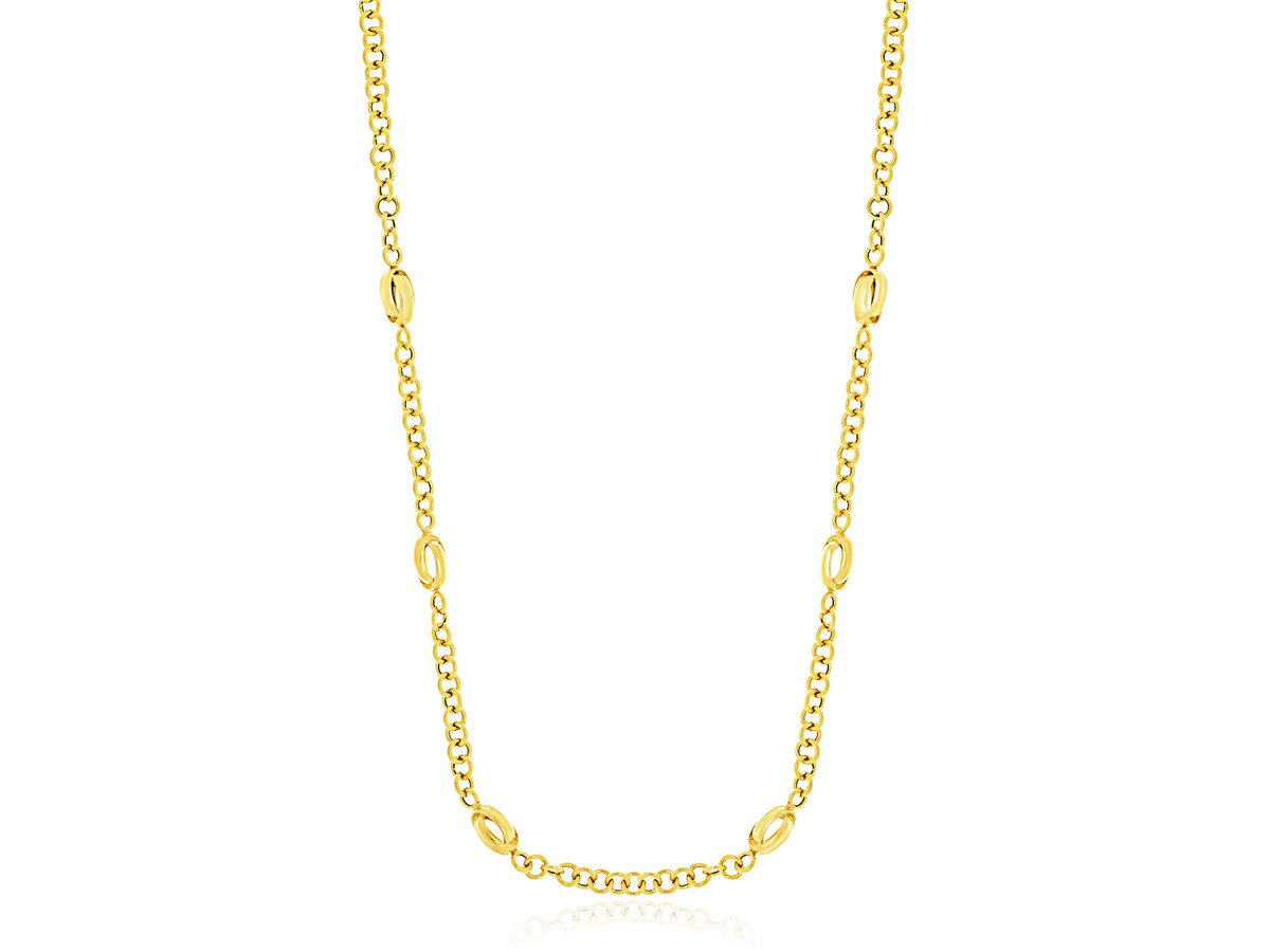 Round Cable Chain Necklace with Interlinked Oval Stations in 14K Yellow Gold