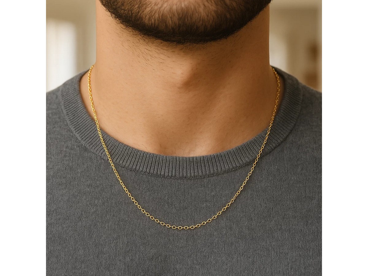 Round cable link chain crafted in 14k yellow gold measuring 1.1 millimeters in width. Available in lengths 16 inches, 18 inches and 20 inches.