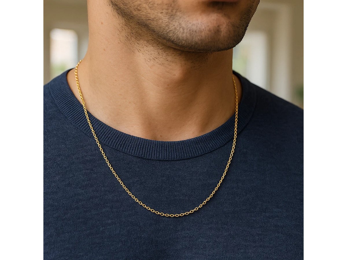 Round cable link chain crafted in 14k yellow gold measuring 1.3 millimeters in width. Available in lengths 16 inches, 18 inches and 20 inches.