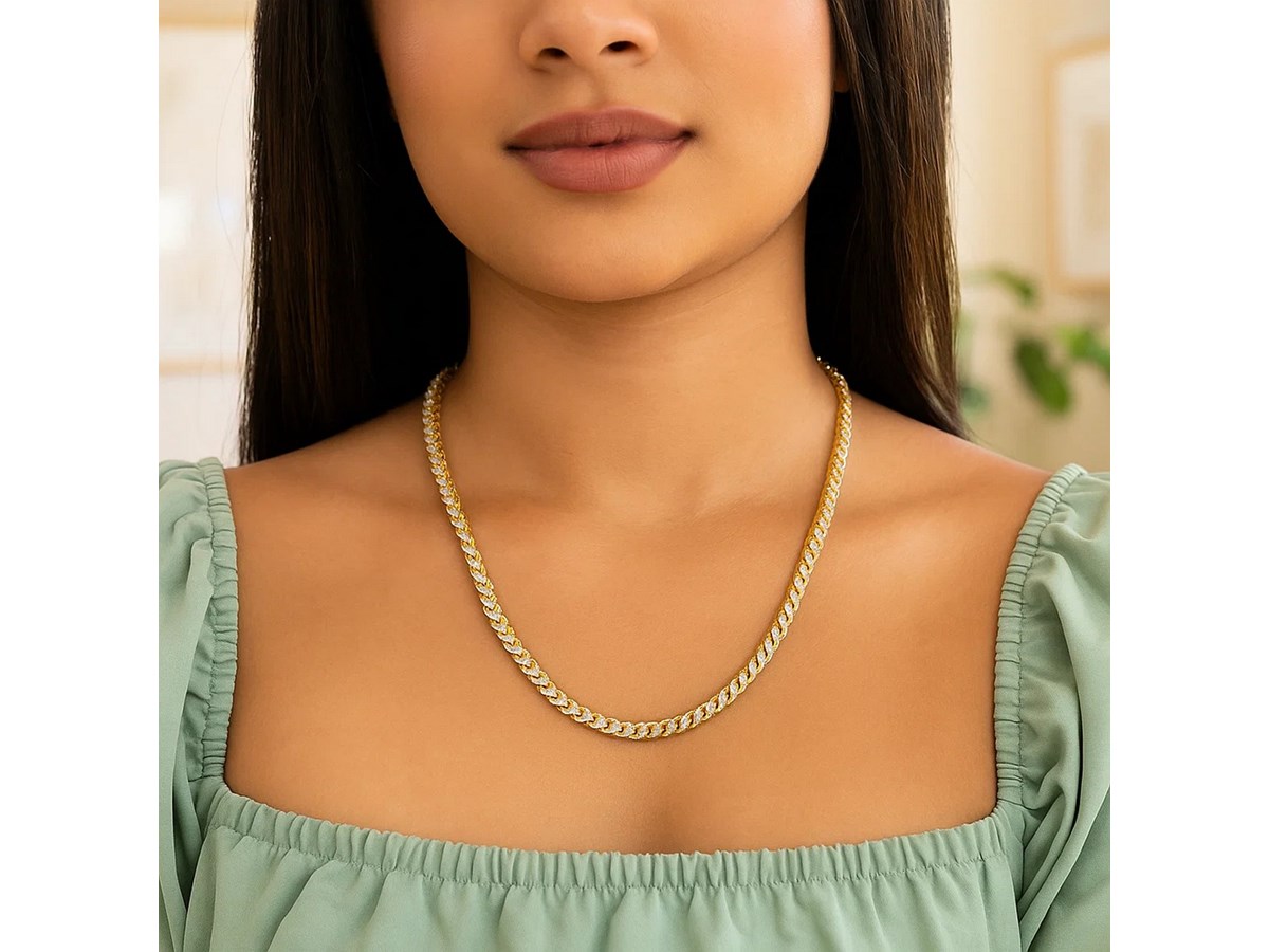 Round pave franco chain crafted in 14k yellow gold measuring 4.00 millimeters in width. Available in lengths 20 inches, 22 inches and 24 inches.