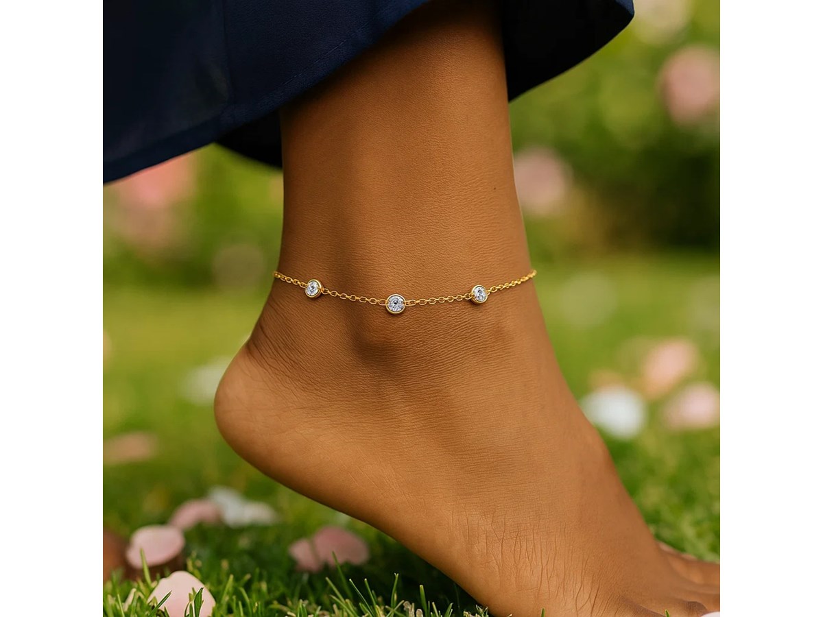 Round White Cubic Zirconia Anklet in 14k Yellow Gold