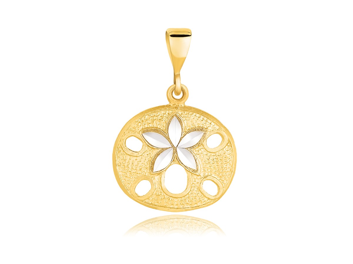 Sea Life Artistic Sand Dollar Pendant in 14K Two-Tone Gold
