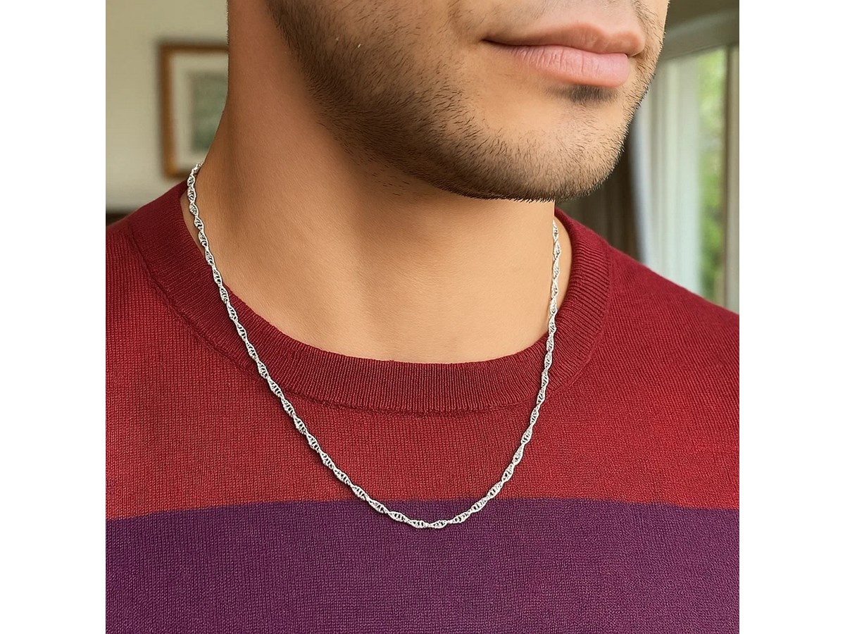 Singapore chain crafted in 14k white gold measuring 1.80 millimeters in width. Available in lengths 18 inches and 20 inches.