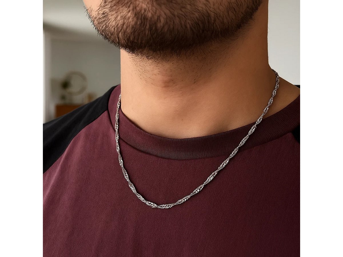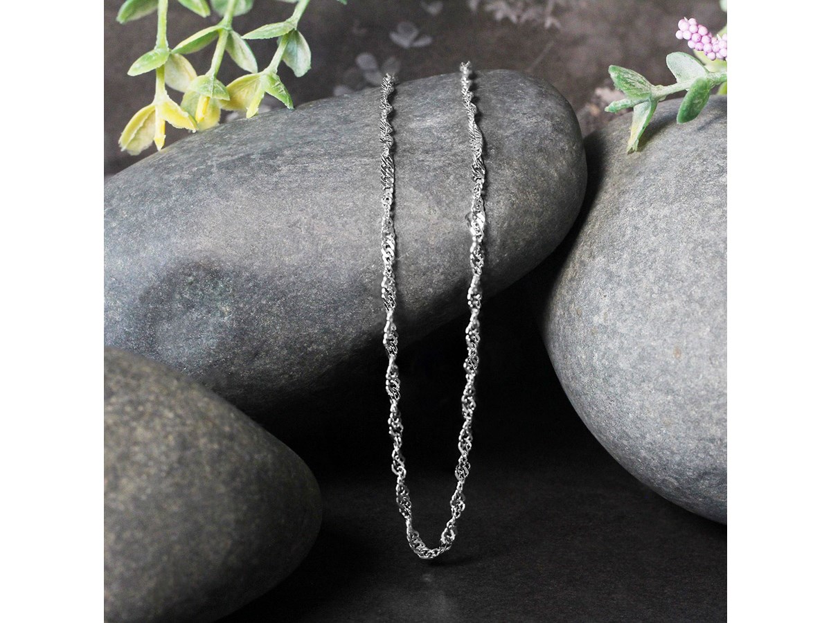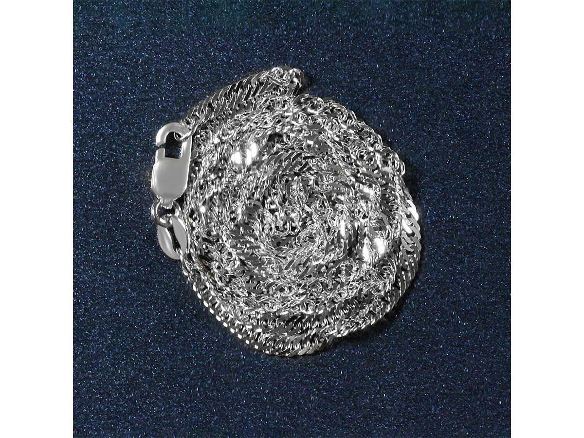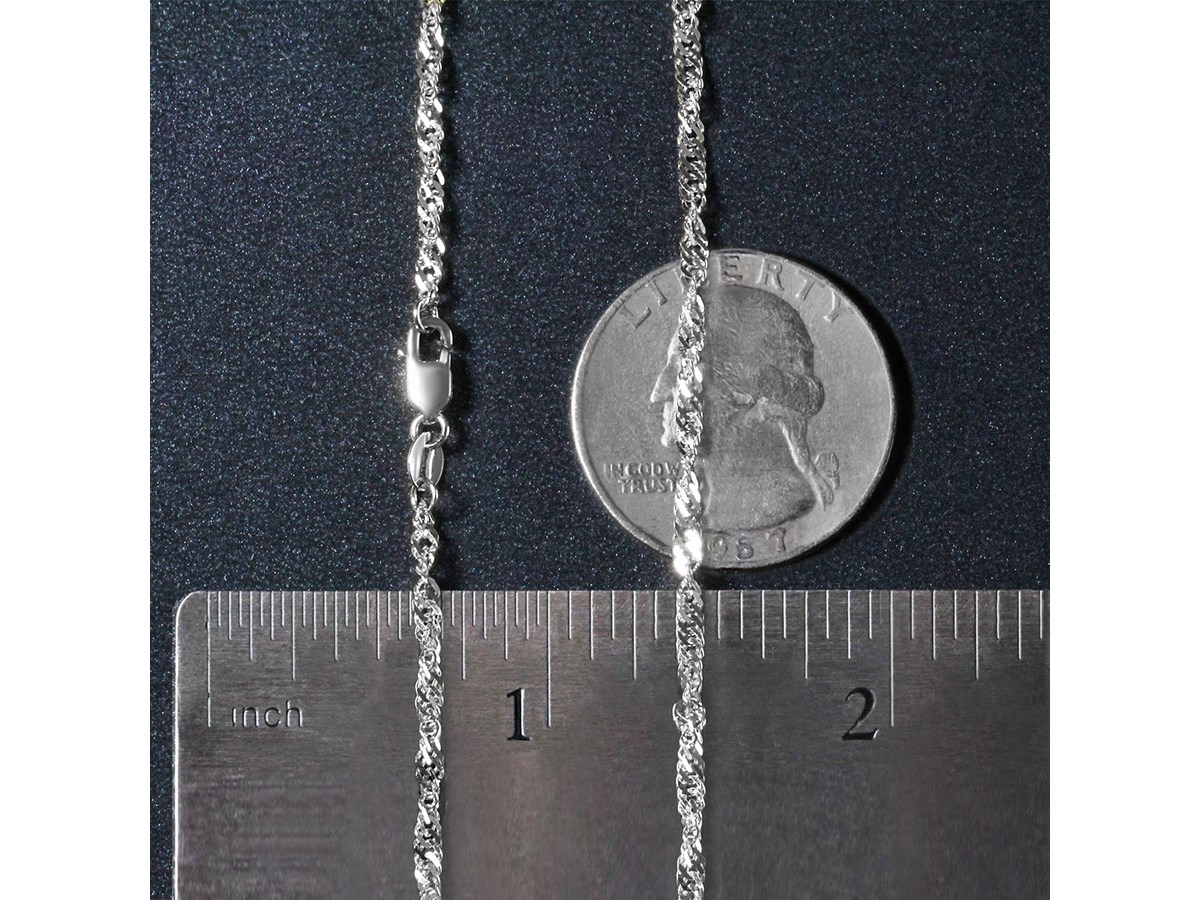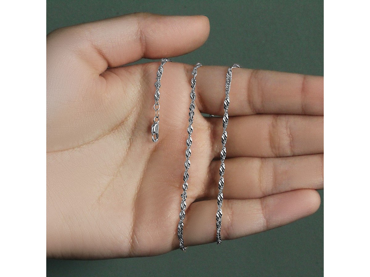 Singapore chain crafted in 14k white gold measuring 2.10 millimeters in width. Available in lengths 16 inches, 18 inches and 20 inches.