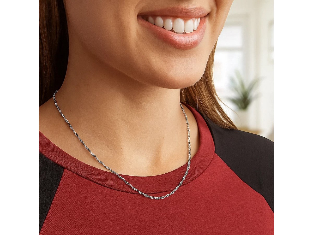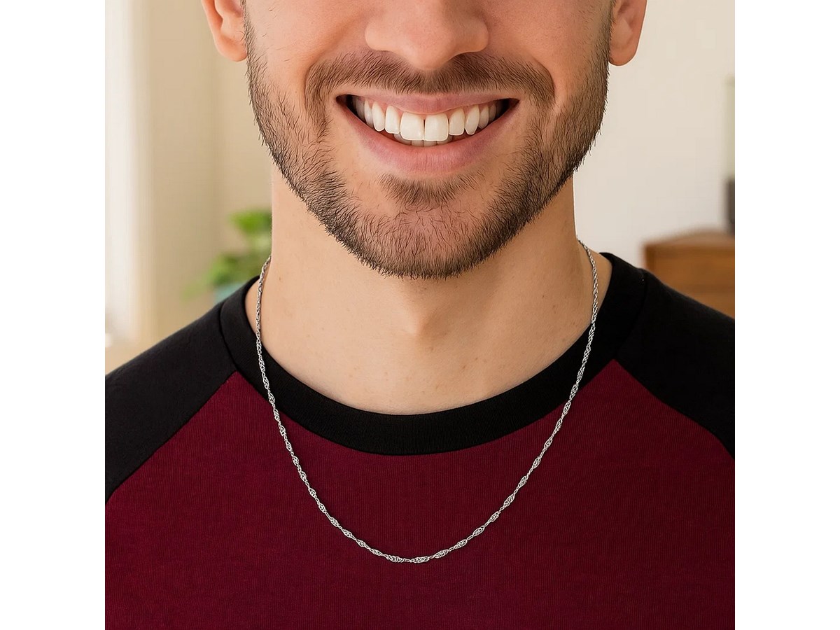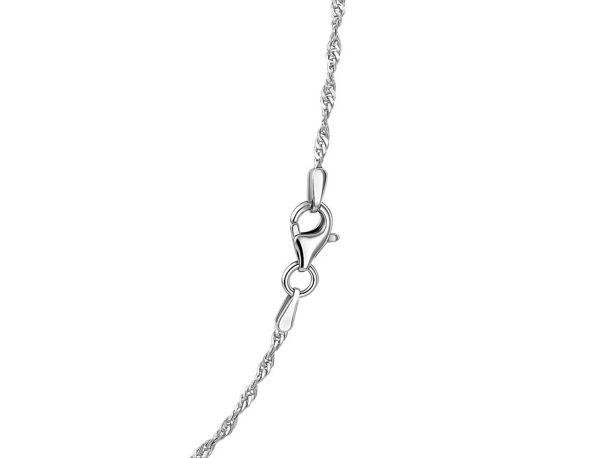 Singapore chain crafted in 925 sterling silver featuring lobster clasp closure and measuring 1.50 millimeters in width. Available in lengths 16 inches, 18 inches, and 20 inches.