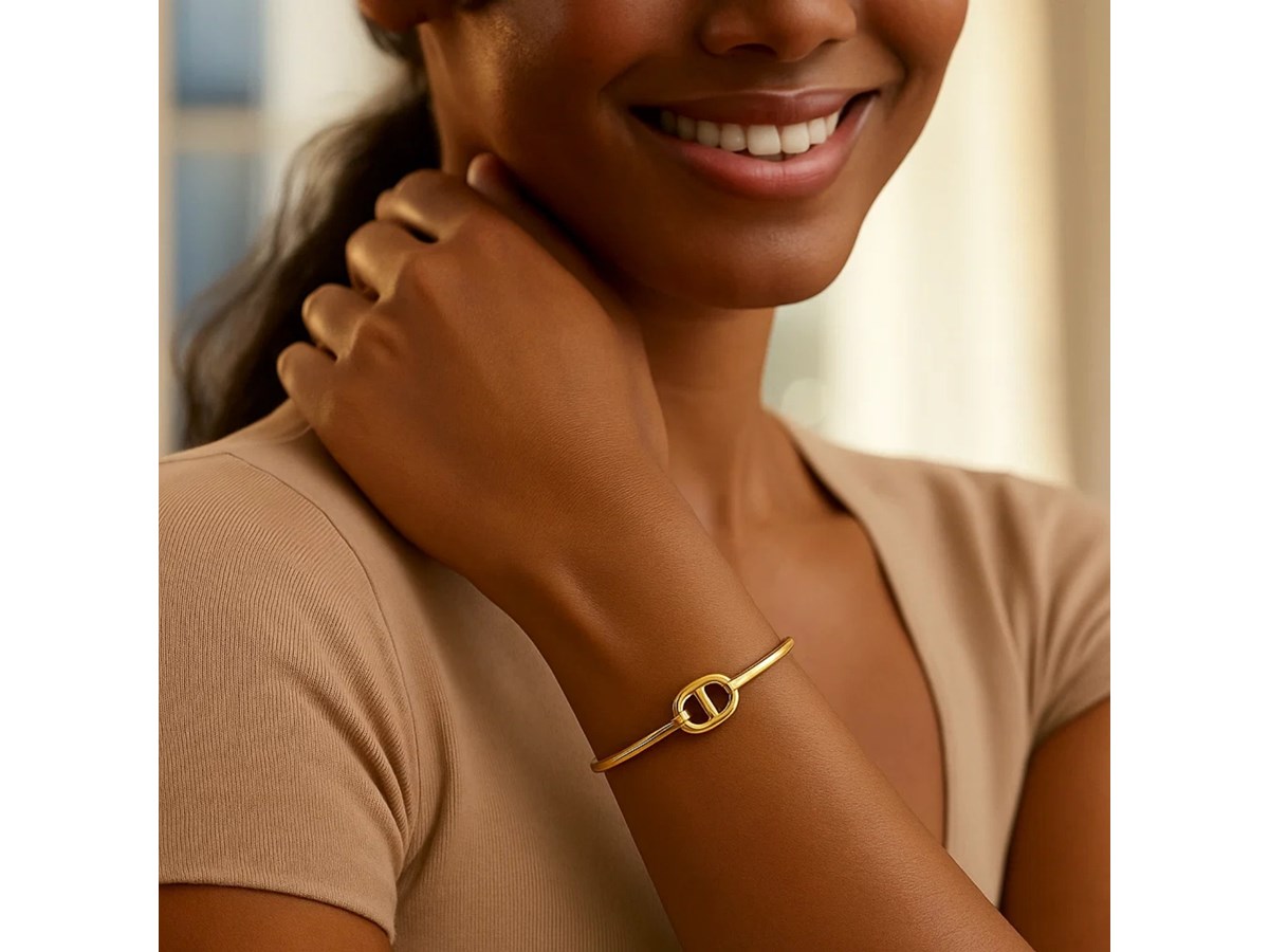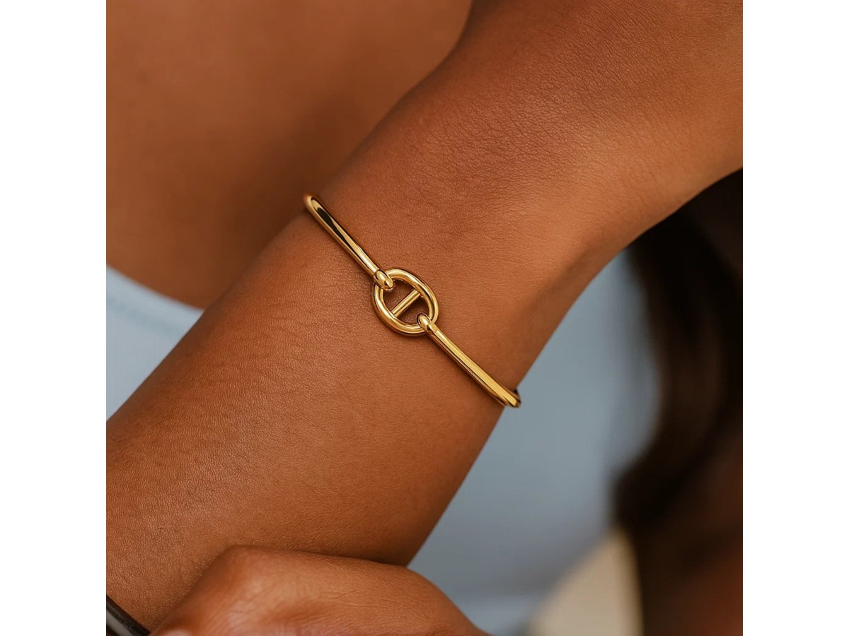 With a puffed mariner link at its center, this 14k yellow gold bangle marries contemporary design with the enduring symbolism of strength and connection. The minimalist band allows the bold link to take the spotlight, while the secure snap clasp ensures comfort and reliability. A versatile and meaningful piece, it’s a perfect nod to tradition reimagined for modern wear.