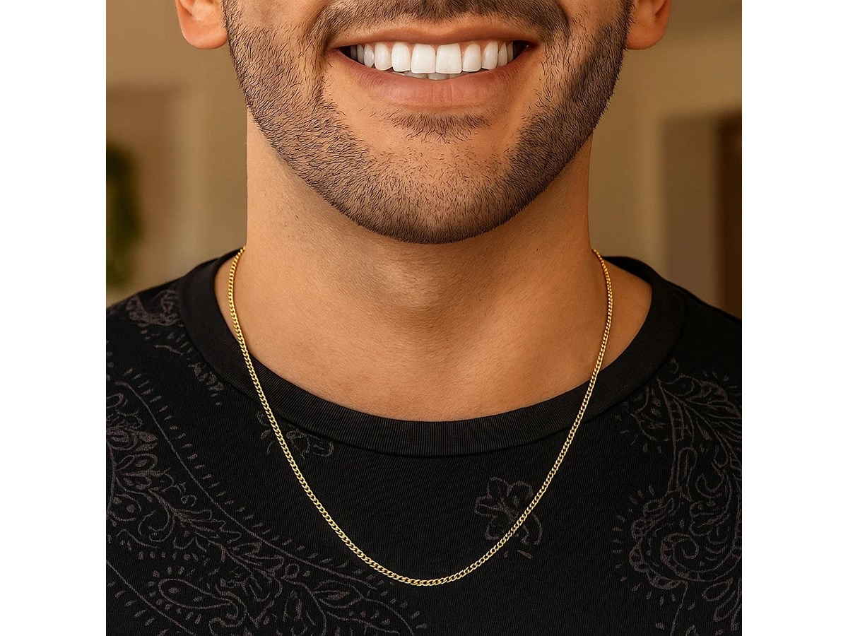 Solid curb chain crafted in 14k yellow gold measuring 2.60 millimeters in width. Available in lengths 16 inches, 18 inches and 20 inches.