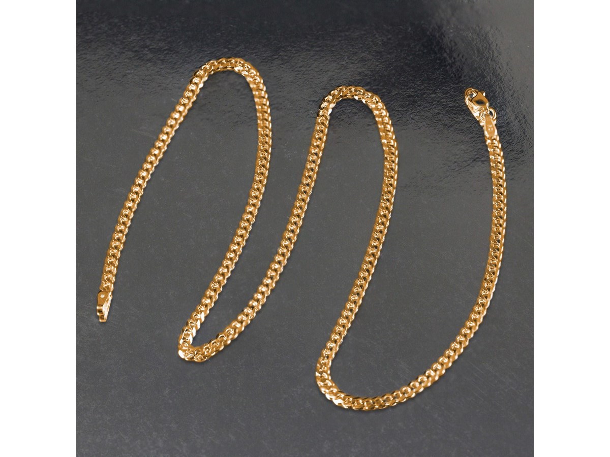 Solid curb chain crafted in 14k yellow gold measuring 2.60 millimeters in width. Available in lengths 16 inches, 18 inches, 20 inches, and 24 inches.