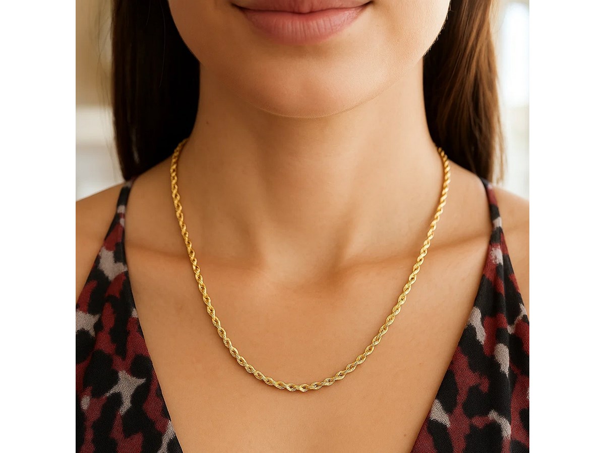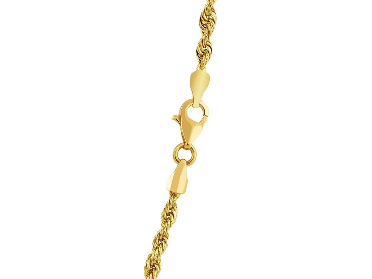 Solid diamond cut rope chain crafted in 14k yellow gold measuring 3.0 millimeters in width. Available in lengths 16 inches, 18 inches, 20 inches, 22 inches, 24 inches and 30 inches.