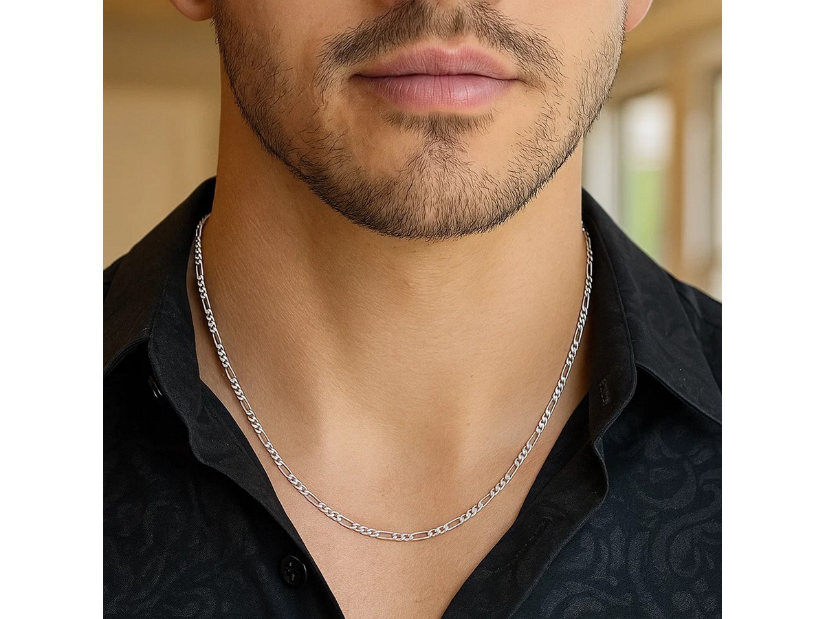 Solid Figaro chain crafted in 14k white gold measuring 1.90 millimeters in width. Available in lengths 16 inches, 18 inches, 20 inches, and 24 inches.