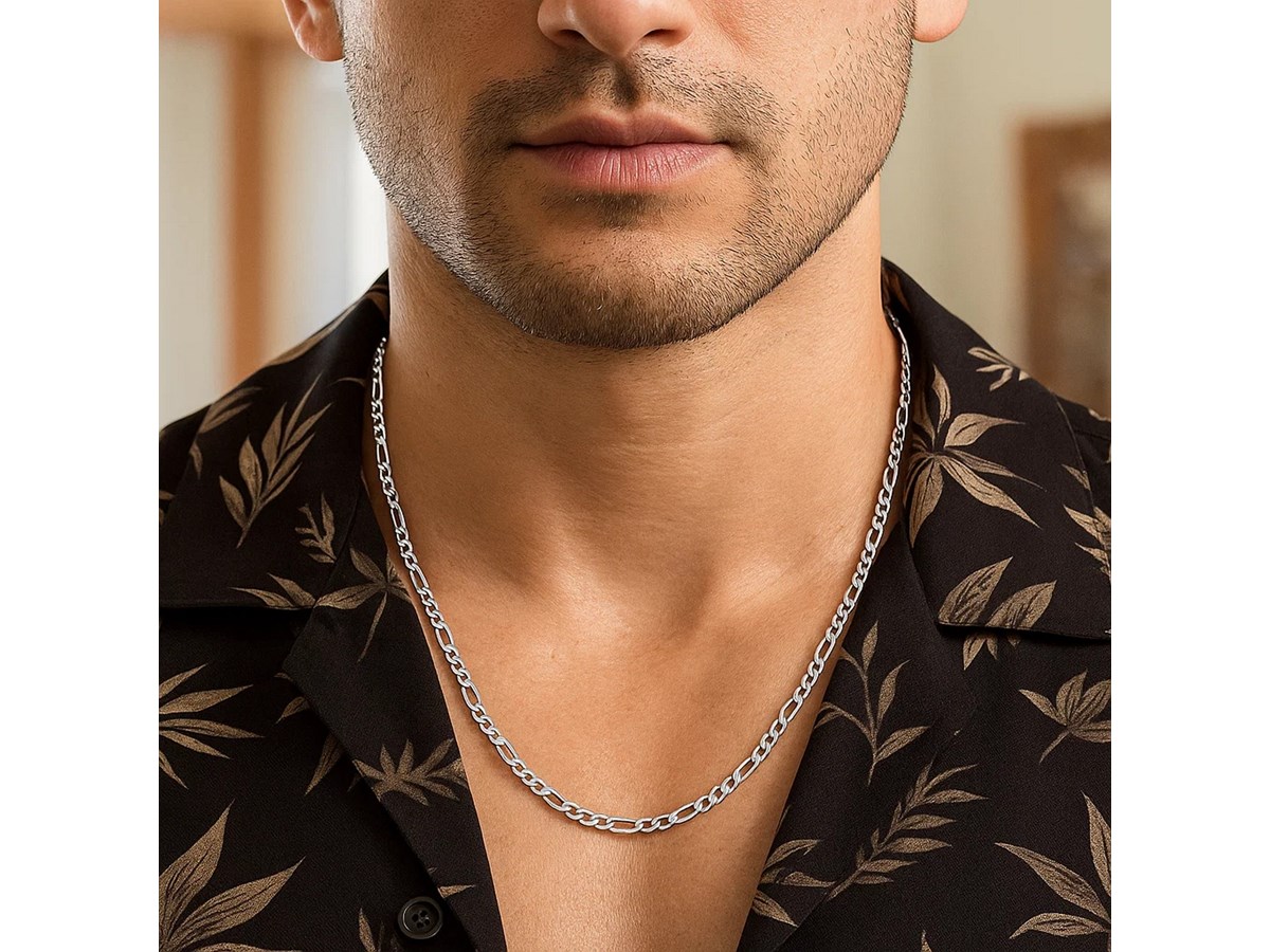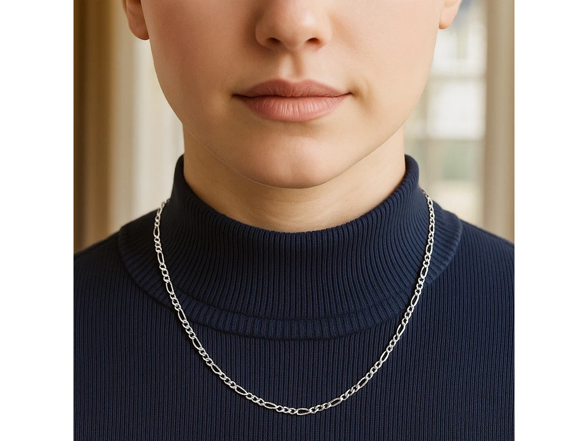 Solid Figaro Chain in 14k White Gold (2.60 mm)