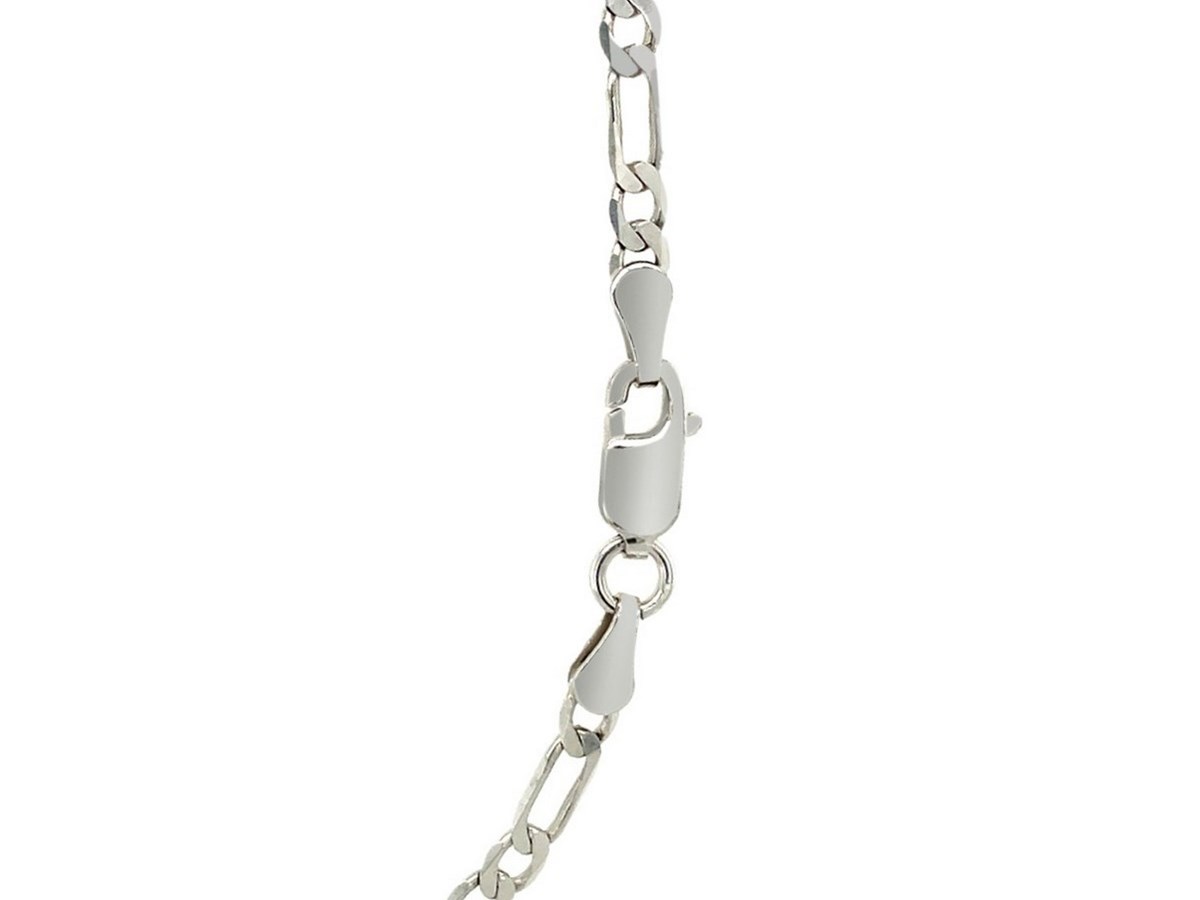 Solid Figaro chain crafted in 14k white gold measuring 2.60 millimeters in width. Available in lengths 16 inches, 18 inches, 20 inches and 24 inches.