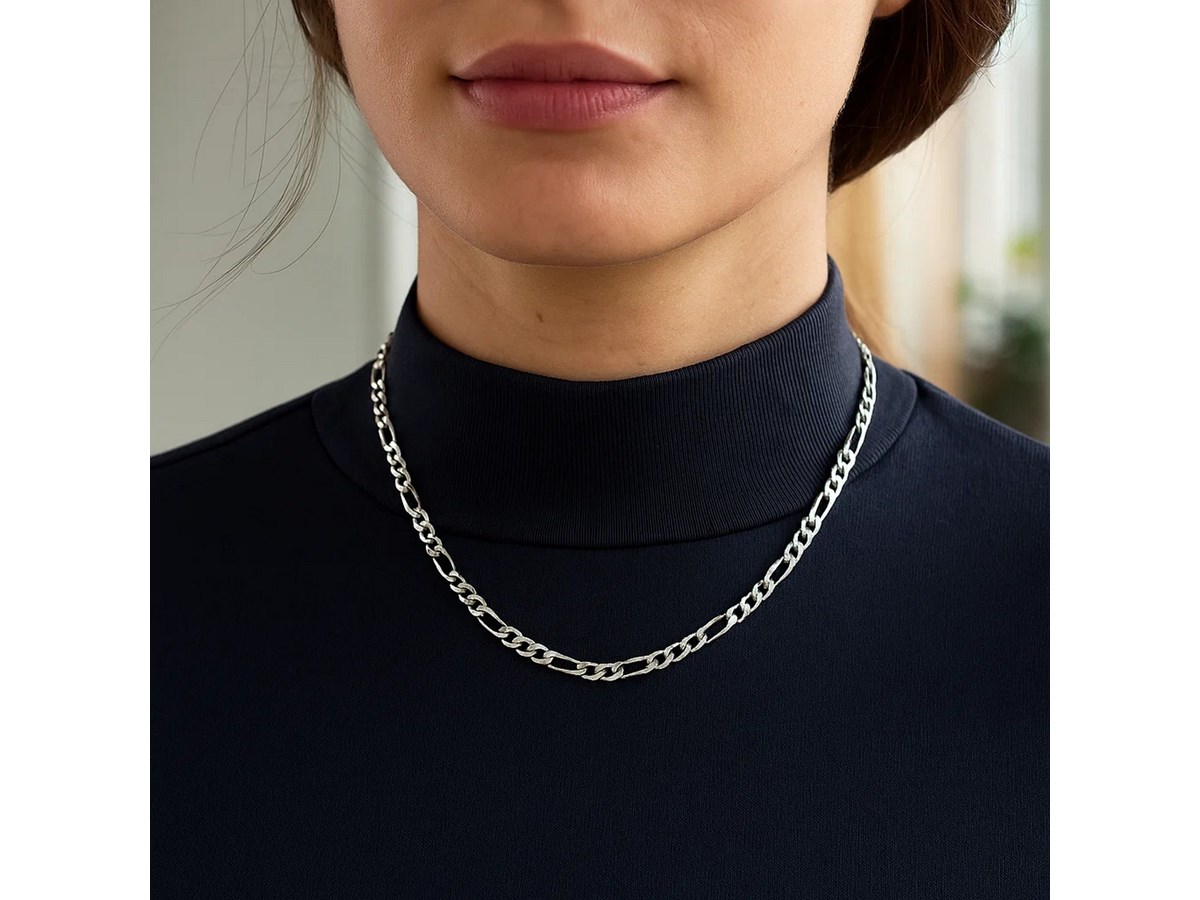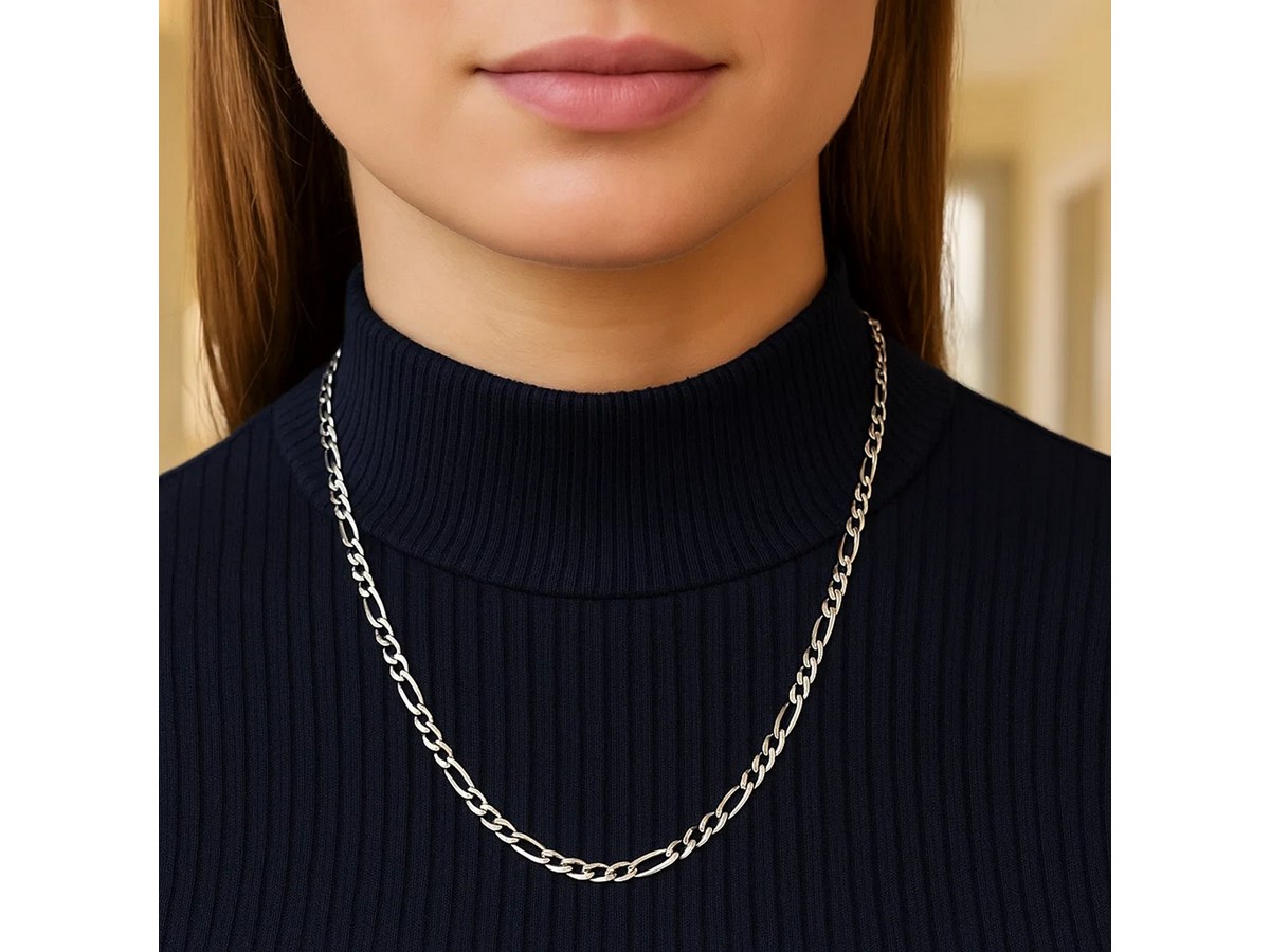 Solid Figaro chain crafted in 14k white gold measuring 3.80 millimeters in width. Available in lengths 18 inches, 20 inches, 22 inches and 24 inches.