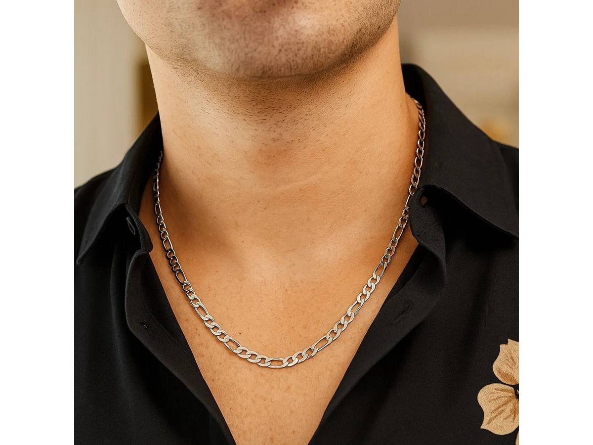 Solid Figaro Chain in 14k White Gold (3.80 mm)