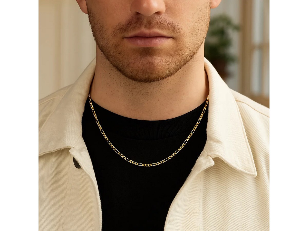 Solid Figaro Chain in 14k Yellow Gold (1.90 mm)