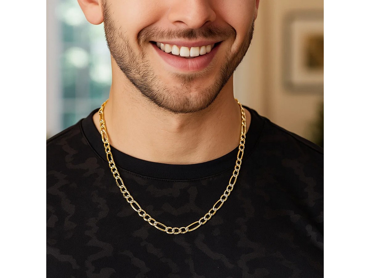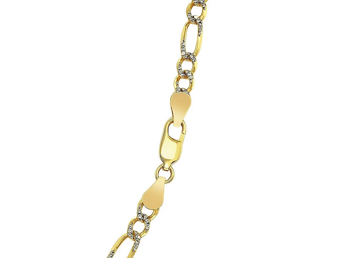 Solid pave figaro chain crafted in 14K yellow gold measuring 3.80 mm in width. Available in lengths 18", 20", 22", and 24".
