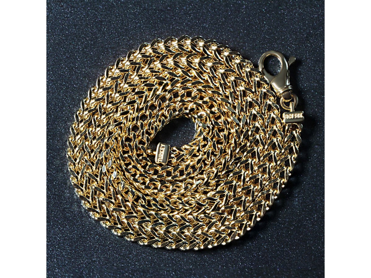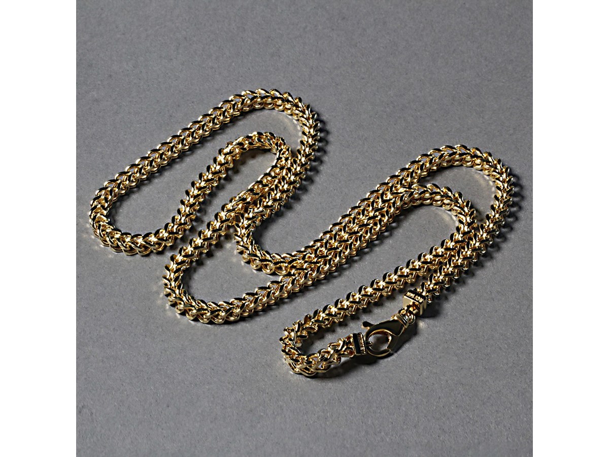 Square franco chain crafted in 14K yellow gold measuring 5.30 mm in width. Available in length 22" and 24".
