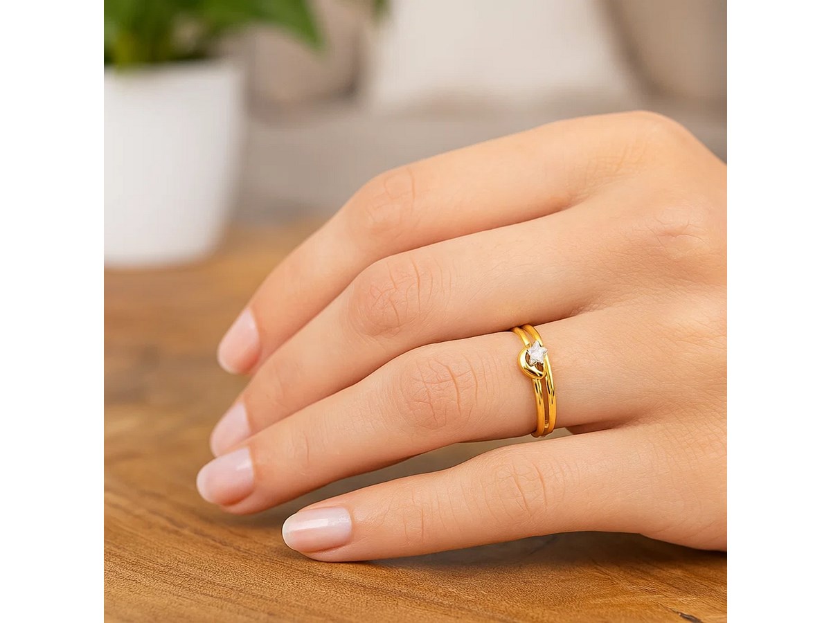 This 10k two tone gold ring features a delicate star and moon motif, enhanced by a diamond-cut and polished finish. Cutout details behind the celestial shapes add a sense of depth and an ethereal quality to the design. A precious accessory, it’s perfect for those inspired by the mystery and wonder of the night sky.