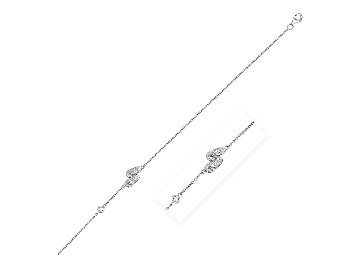 Sterling Silver Anklet with Textured Flip Flops and Cubic Zirconia