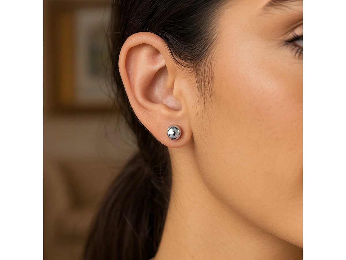Classic sterling silver ball stud earrings (8.00 mm) featuring a smooth, high-polish finish for a radiant shine. Their timeless, minimalist design offers effortless elegance, making them perfect for everyday wear or pairing with any outfit.